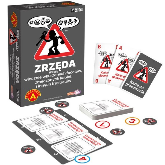 Gra ZRZĘDA to super prosta i przezabawna gra imprezowa. Wylosuj 3 karty ze stosu i odczytaj na głos. Teraz wszyscy gracze w sekrecie wybierają, co drażni ich najbardziej. Sądzisz, że inni myślą podobnie? Postaw dużo na swoją odpowiedź i wygraj więcej.
