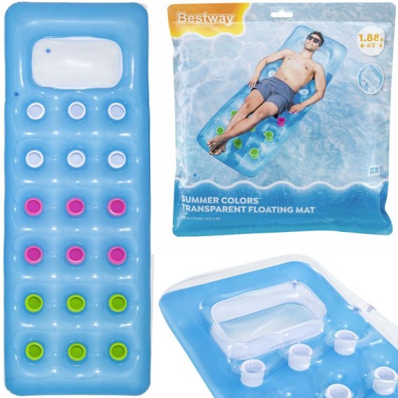 Rewelacyjny dmuchany materac do pływania Bestway świetnie sprawdzi się podczas leniuchowania w wodzie. Bajecznie kolorowy materac z przeźroczystym okienkiem zapewni czystą przyjemność podczas odpoczynku. Prezentowany produkt w letnich, świeżych kolorach bardzo efektownie będzie reprezentował się na każdej plaży.