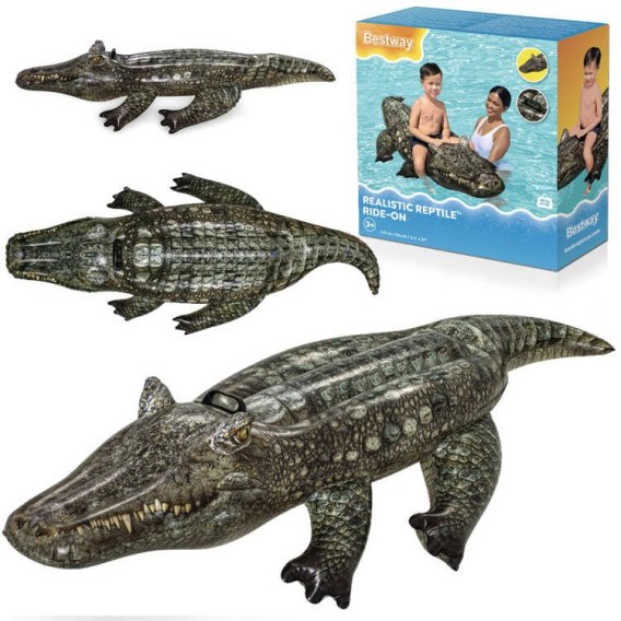 Dmuchana zabawka do pływania Krokodyl firmy Bestway to rewelacyjna i bardzo realistyczna propozycja w tym sezonie. Pływający Gad będzie prawdziwym hitem na plażach. Produkt o wymiarach 193 x 94 cm wykonany został z mocnego winylu.