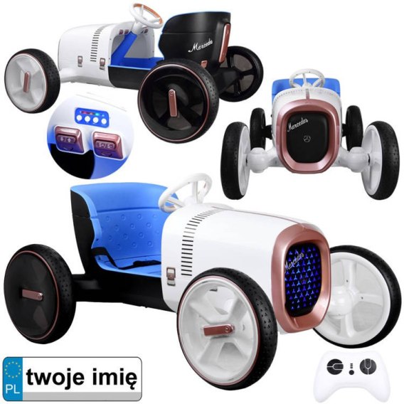 Nietuzinkowe, ledowe oświetlenie dające rewelacyjne efekty świetlne, wygodny kubełkowy fotel, elektryczne przyciski do sterowania kierunkiem i szybkością pojazdu, logo Mercedesa zadowoli każdego młodego kierowcę.