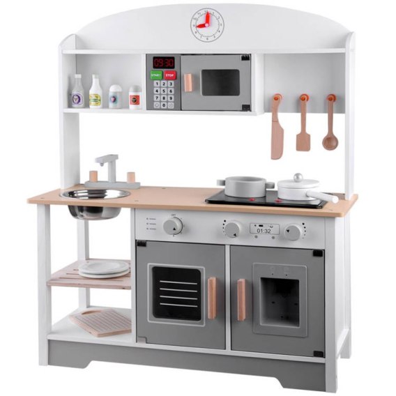 JOKOMISIADA BIAŁO-SZARA interaktywna kuchnia drewniana dla dzieci + akcesoria ZA4126