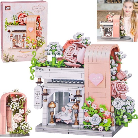 Ten niezwykle uroczy zestaw klocków to definicja romantyzmu zamknięta w budowli pełnej kwiatów, elegancji i wyjątkowych detali. Rose Meet Wedding Hall to mały klockowy sklepik weselny, który zachwyca już od pierwszego spojrzenia - pastelowe barwy, mnogość ozdobnych róż i subtelne detale sprawiają, że wygląda jak bajkowa witryna z marzeniami o najpiękniejszym dniu w życiu.