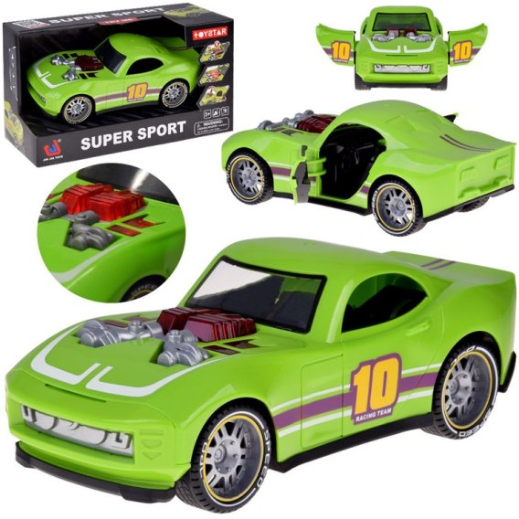 Samochód zachwyca dynamicznym wyglądem, migającym na czerwono silnikiem, realistycznymi odgłosami pracy silnika, przyspieszenia i uruchamiania auta. Wystarczy nacisnąć silnik na masce, by auto ożyło - zaczyna świecić, mrugać i wydawać dźwięki niczym prawdziwy samochód sportowy!