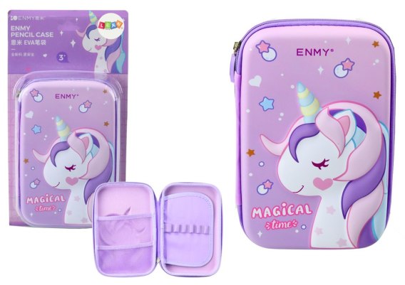 LEAN Duży Piórnik Z Jednorożcem Rozkładany 3D Fioletowy 23x15x5 cm