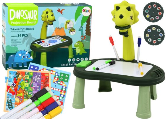 Projektor Do Rysowania Dinozaur Stolik Gry 2w1 Chińczyk Węże Zielony