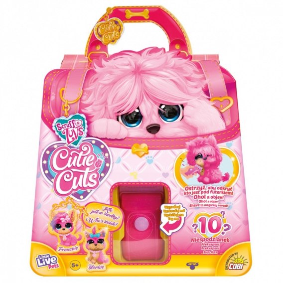 Zmień kudłaczka w eleganckiego psiaczka! Sprawdź jaki piesek kryje się pod futerkiem. Ostrzyż go przy pomocy golarki, następnie wykąp, wysusz i uczesz. Dodaj akcesoria ukryte w salonie (otwórz wszystkie drzwiczki, aby je znaleźć). Pomaluj pazurki pieska przy pomocy magicznego lakieru. Z ostrzyżonej sierści pieska możesz zrobić dla niego poduszkę. Piesek w opakowaniu jest różowy, ale nie wiesz jakiej rasy piesek ukryty jest w środku: York czy Buldog Francuski. To będzie dopiero niespodzianka!