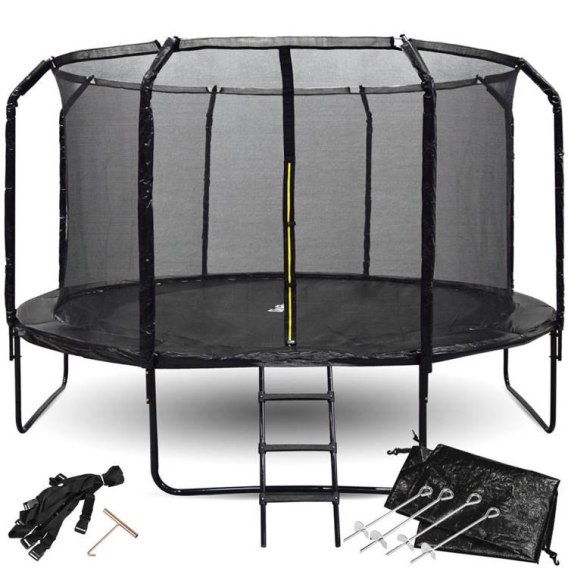 Trampolina ogrodowa SkyFlyer Black 426 cm z siatką i profilowanymi słupkami to propozycja dla wszystkich lubiących i ceniących sobie dobry ruch. Nie od dziś wiadomo, że ruch to zdrowie, endorfiny, pozytywne nastawienie, wszystko co dobre. Dlatego taka trampolina we własnym ogrodzie to fantastyczny motywator do wprawiania własnego ciała w ruch! Nie ma na co czekać właśnie ta trampolina pozwoli Tobie i Twoim dzieciom być w świetnej kondycji i formie.